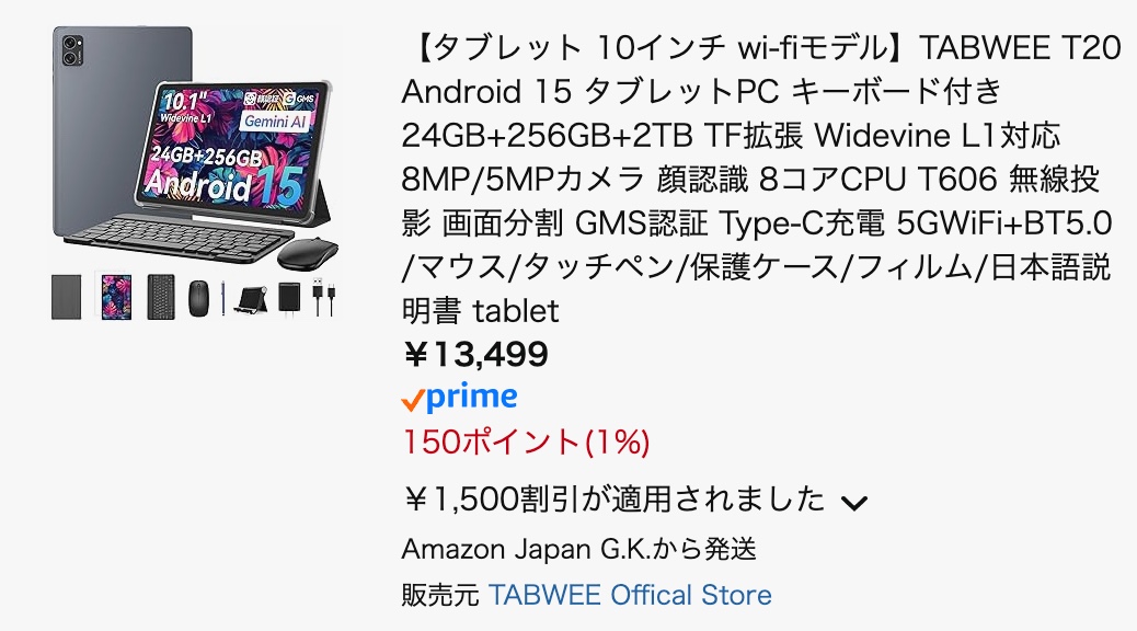 TABWEE T20(豪華パッケージ):13,499円