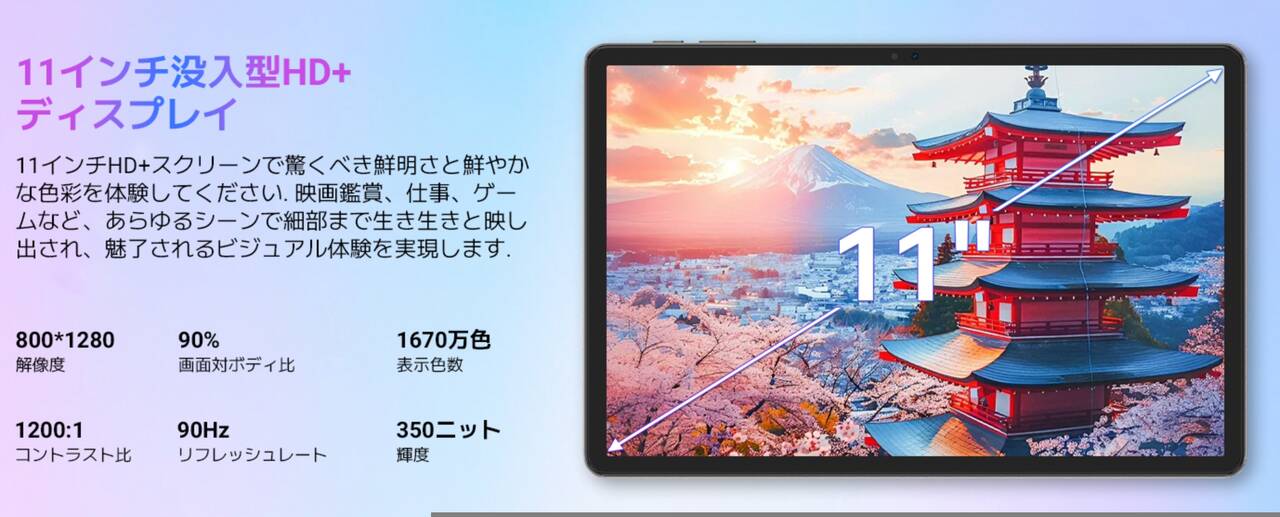 | ディスプレイ | 11インチ、液晶、1,280×800、最大90Hz |