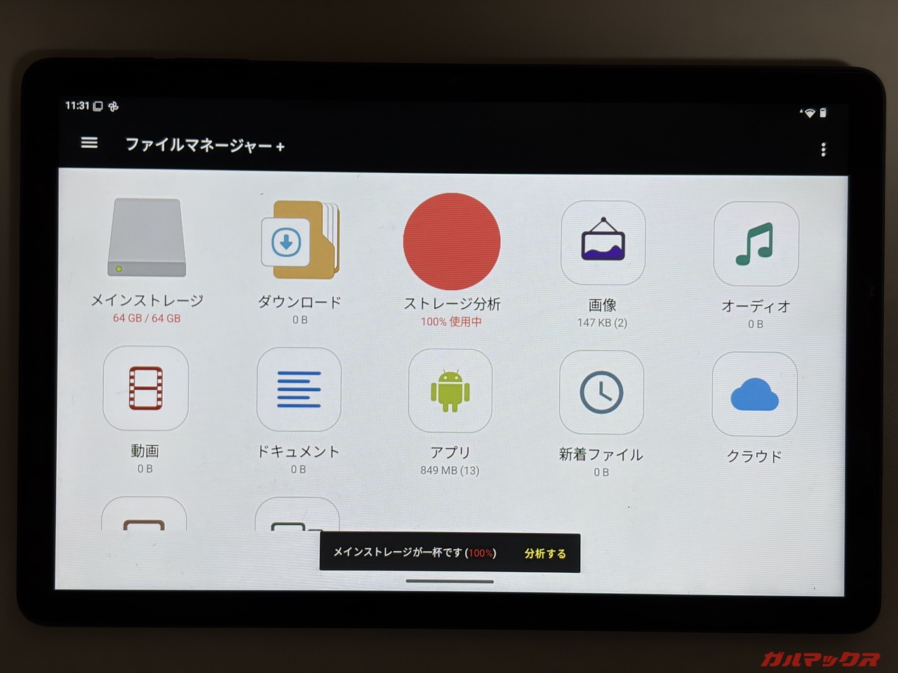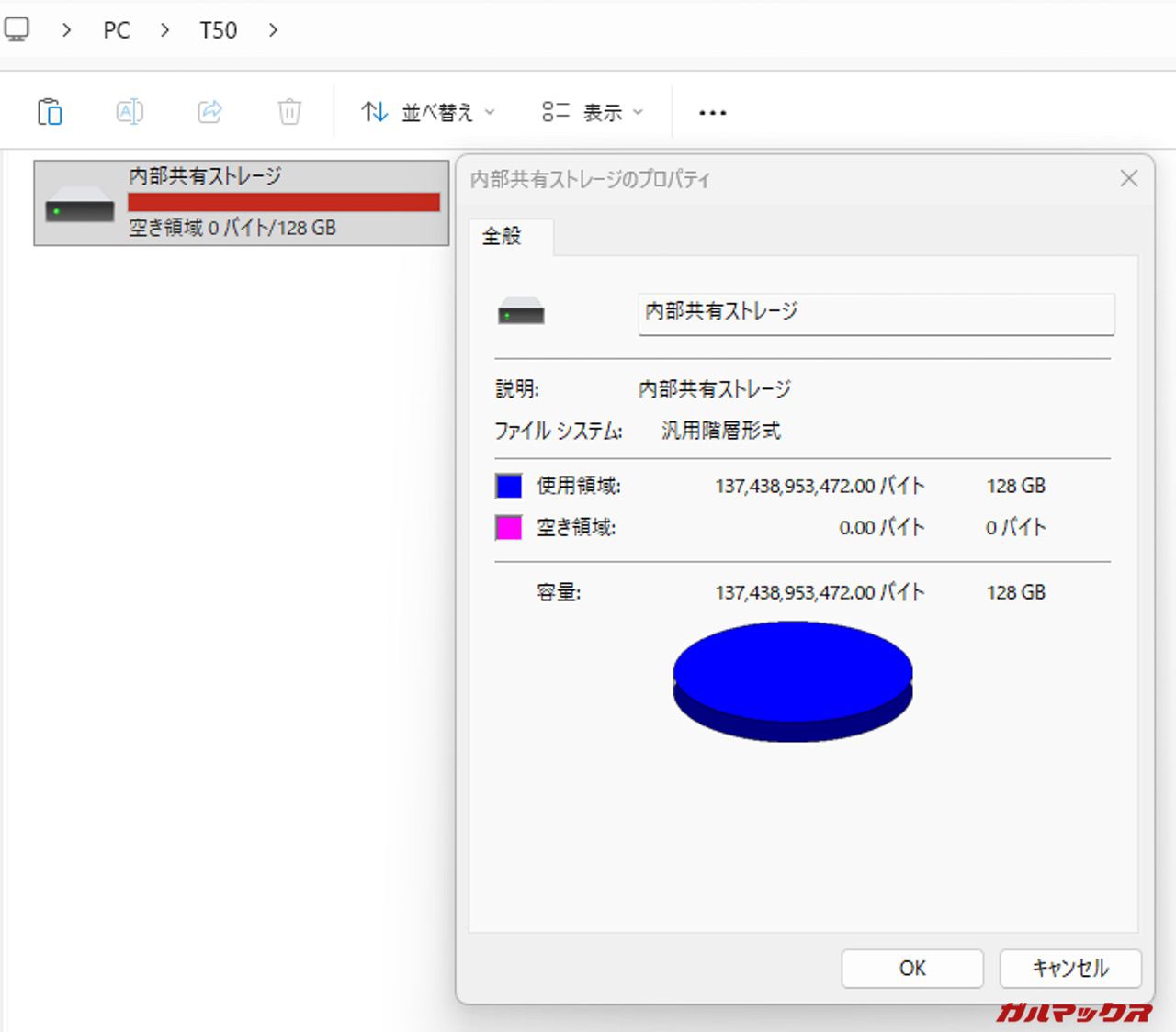 本体のシステム表示にはまだ数十GB単位の「空き」があるように見えますが、実態としてはこれ以上のデータを一切受け付けない、容量が完全に枯渇した状態となっています。