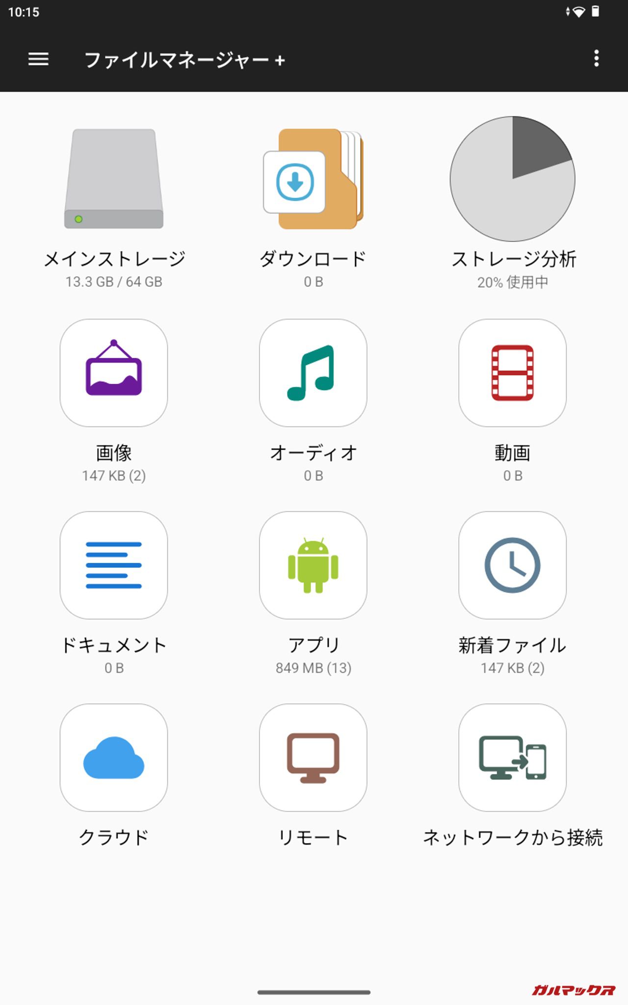 ▼ただサードパーティ製のファイルマネージャー+では以前と変わらず64GBと表示されました。↓