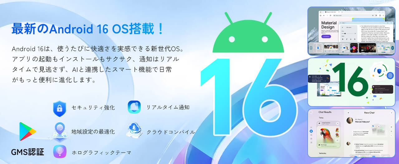 ▼OSは最新鋭のAndroid 16を搭載!安価ながらも最新バージョン搭載がGood。メジャーアップデートの対応にも期待したいですね。↓