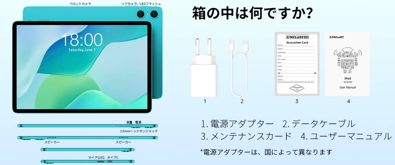 ▼付属品は以下の通り。以下には記載されていませんがスタイラスペンも付属していると記載されていました。↓
