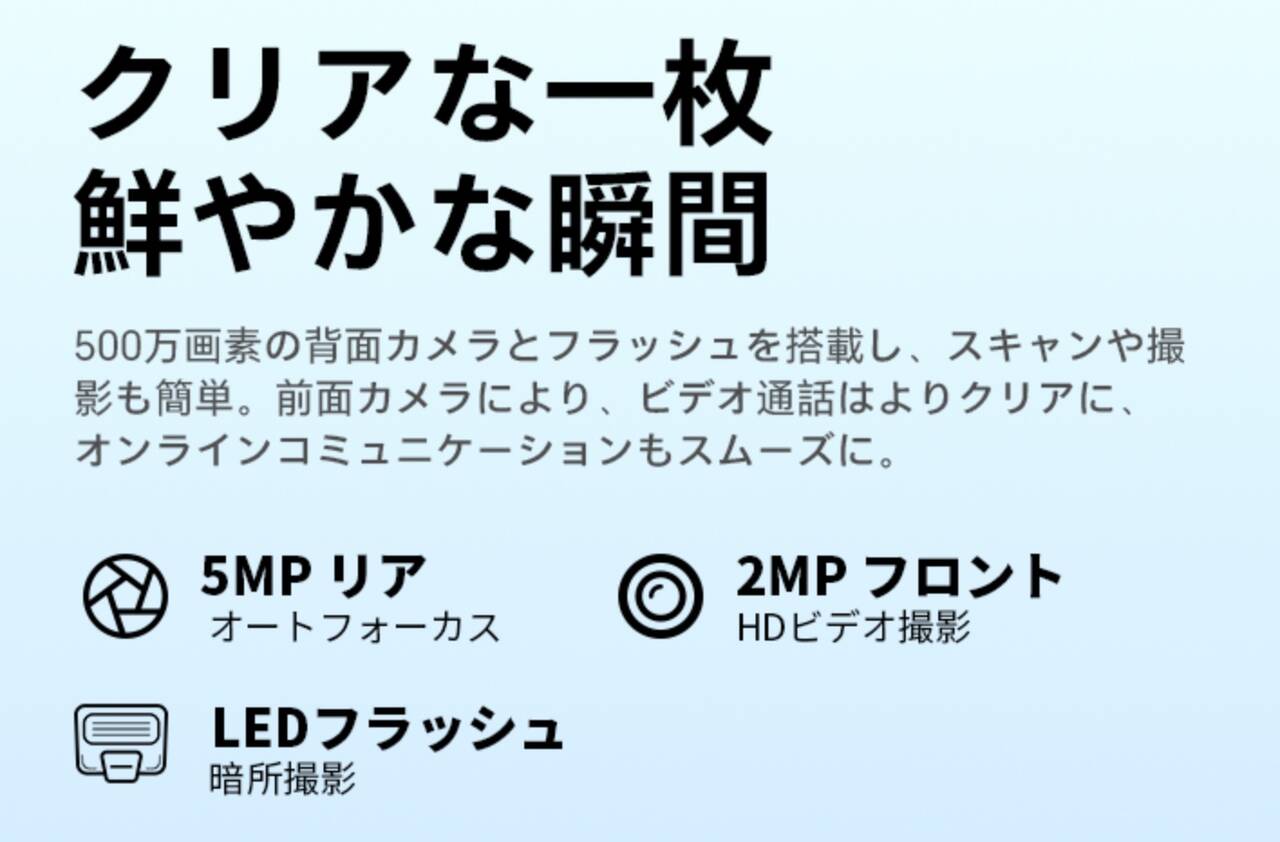 OSはAndroid 15 Go Editionを搭載しています。このOSは普通のOSと違ってロースペックでもなんとか動作できるよう軽量に作られたOSです。