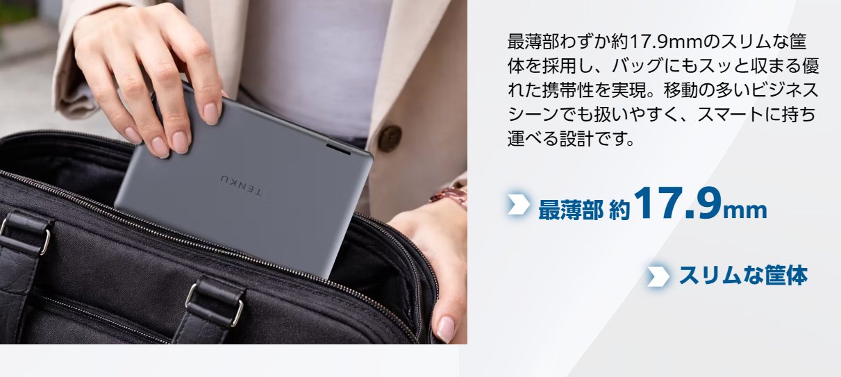 とはいえ、13インチクラスのノートPCのような「1日中ACアダプターいらず」という訳にはいかない水準ですね。短時間の会議や移動中なら単体で、腰を据えて作業するならPD充電器をセットで……という運用が基本になりそうです。