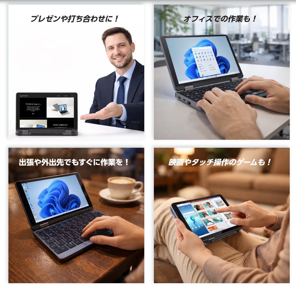 TENKU Pocket8はビジネス用途に適したWindows 11 Proを内蔵!HomeではなくPro版となっています。大抵の人だとHomeで十分なんて言われていますが、さすが仕事用途を想定しているモデル。