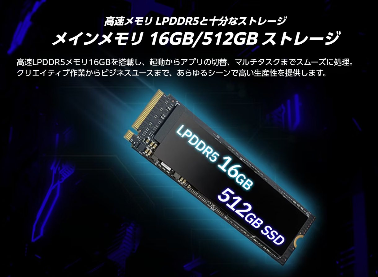 | メモリ | 16GB LPDDR5 |