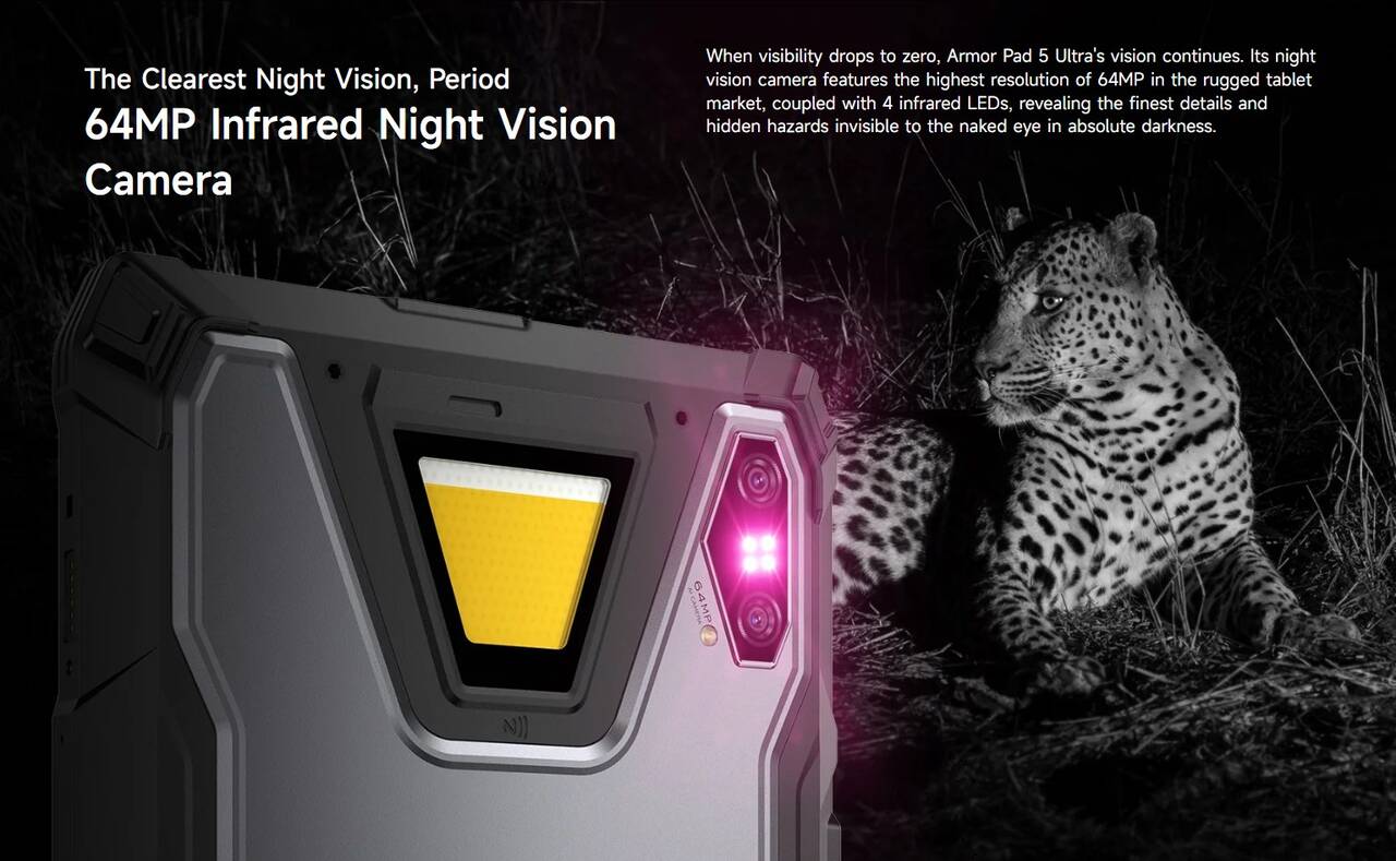 ▼さらに本機は先代になかったナイトビジョンカメラを搭載しているのもポイント!カメラの間にある赤外線を照射することで完全な暗闇でも視認、撮影を可能とする、通常のスマホ、タブレットでは不可能な芸当をも可能としています。↓