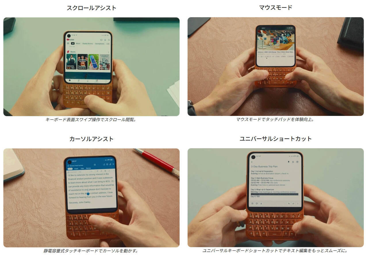 ▼本機の特徴はディスプレイ下部に搭載された物理キーボード。BlackBerryのように物理キーボードでの文字入力ができます。タッチでの入力では物足りないそこのアナタ!物理ボタンの感触を味わえますよ!↓