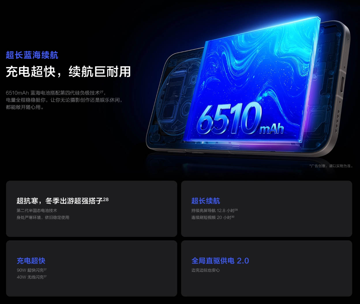 • 6510mAh+90W充電+40Wワイヤレス充電