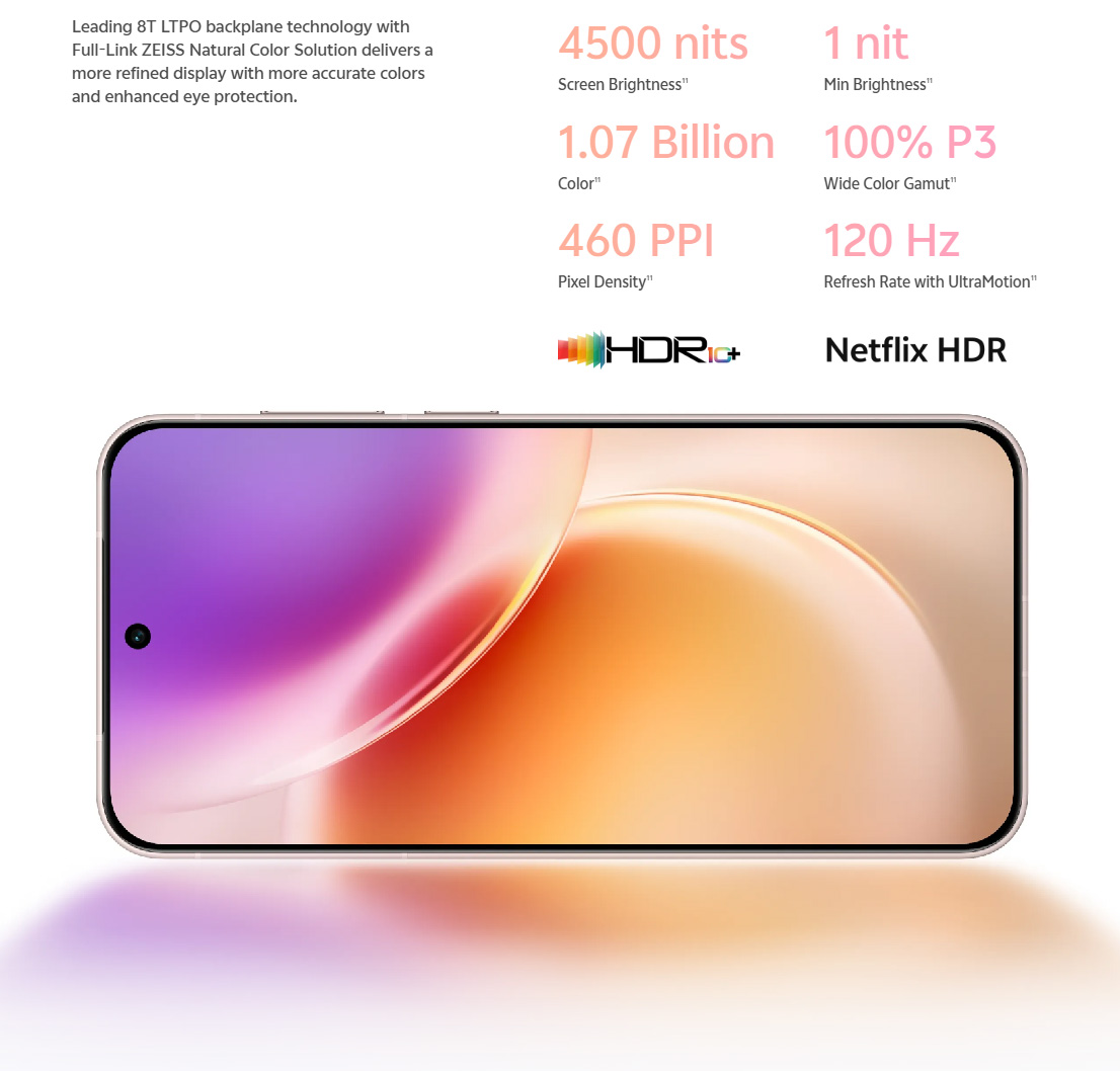▼ディスプレイは6.31インチの有機EL。解像度は2640×1216で、1-120Hzの可変リフレッシュレートに対応しています。ピーク輝度は4500nits。最低輝度は1nitsに対応しており、夜間の使用や長時間の使用でも画面が見やすく目が疲れにくいでしょう。↓