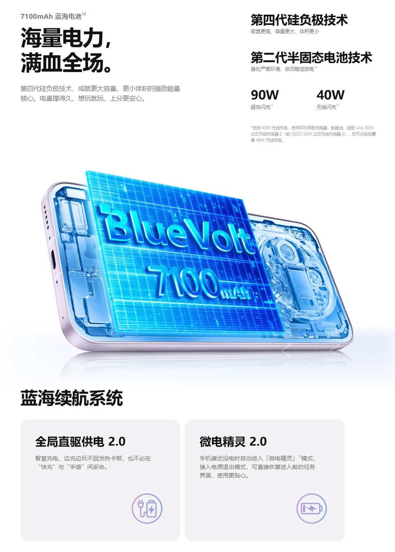 ▼バッテリー容量は7,100mAhとX300からは約1,000mAh、X300 Proからも約600mAh増加しています。90W(FlashCharge)の有線急速充電や、40W(FlashCharge)のワイヤレス充電に対応し、フルシナリオのバイパス充電にも対応しています。↓
