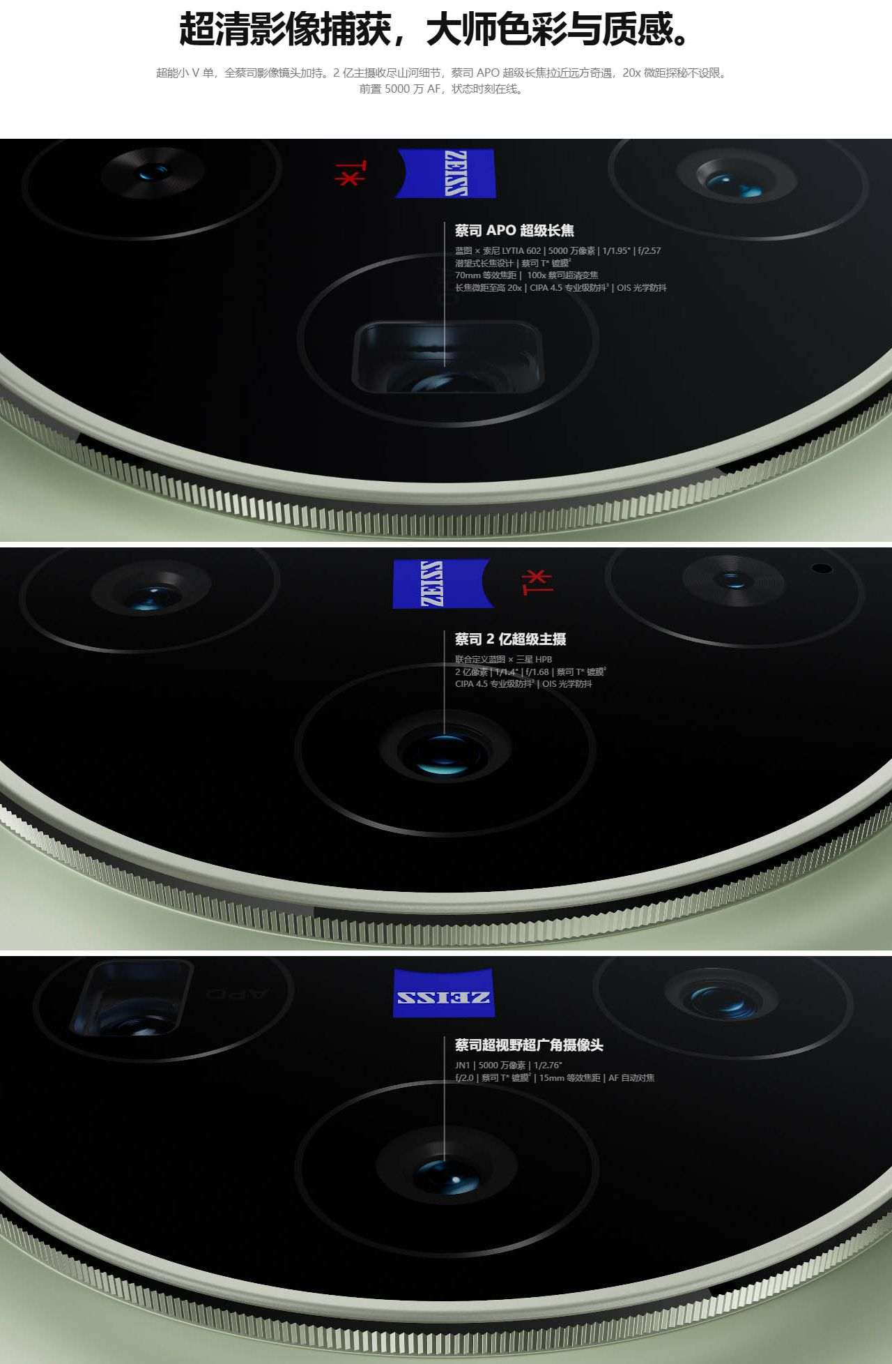 ▼カラーは胶片绿(グリーン系)、梦核紫(パープル系)、银白(ホワイト系)、钛黑(ブラック系)の4色。本体サイズは161.98×75.48×8.00mmで、重量は217g。IP68、IP69の防水防塵に対応しています。↓