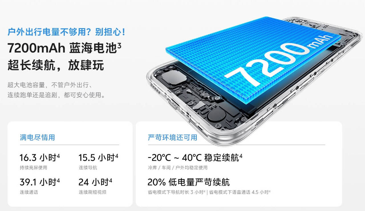 ▼バッテリー容量は7200mAh。44W(FlashCharge)の急速充電に対応しています。↓
