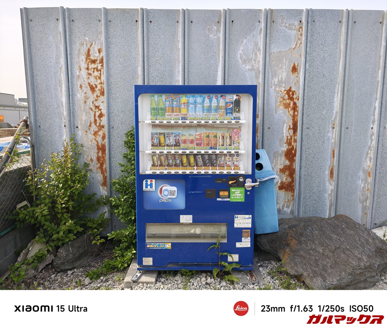 ▼工事現場脇の自販機くん。Xiaomi 15 Ultraのほうが忠実な見た目ですが、トタンのサビや右下の岩などの細部のディテールはvivo X200 Proに軍配が上がる、という違いが出ています。↓