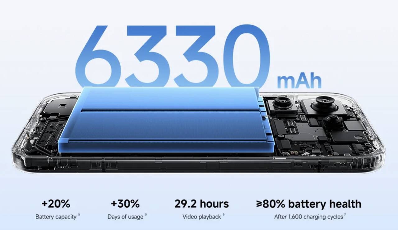 ▼また小ぶりながら6,330mAhもの大容量バッテリーを搭載。ちなみに前モデルから1,000mAh以上も容量アップしている。どうなってるんだ。凄すぎだろ。↓