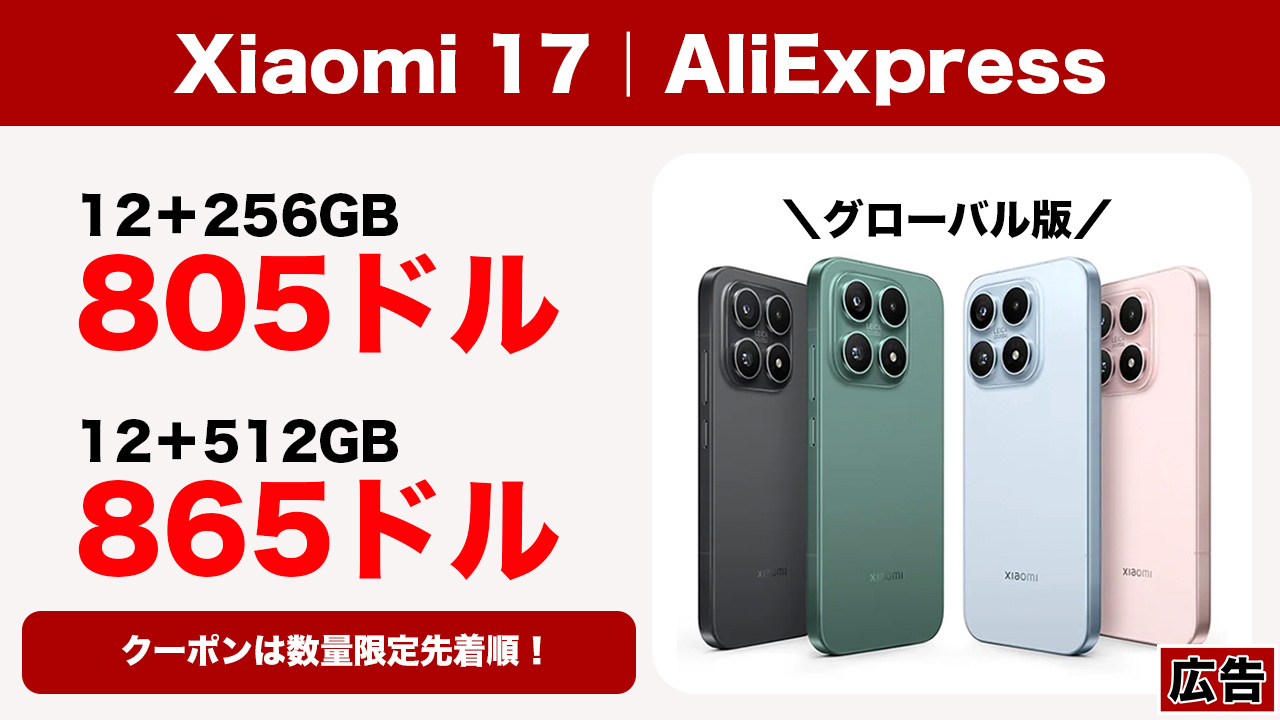 AliExpressでXiaomi 17のグローバルバージョンがセールになっているらしい。狙っていた人はチェックしてみよう。