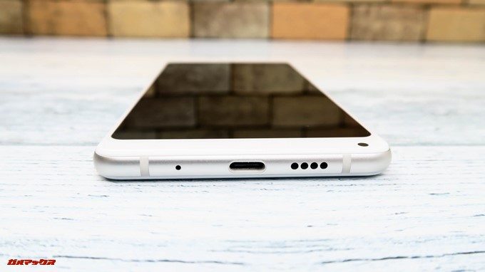 ▼付属品チェックでもUSB Type-C→イヤホンジャックのアタッチメントが同梱されていることからも分かる通り、Xiaomi Mi Mix 2Sは残念ながらイヤホンジャックが非搭載。本体下部にはUSB Type-C端子とスピーカー、マイクしか見当たりません。↓