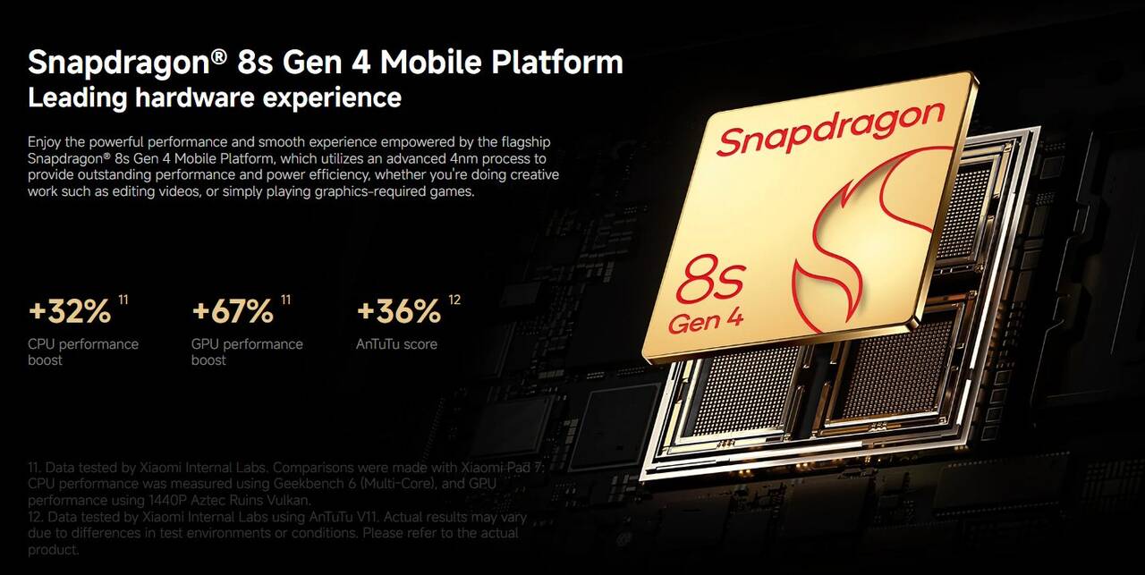 ▼Xiaomi Pad 8が搭載するSoCはSnapdragon 8s Gen 4となります。↓